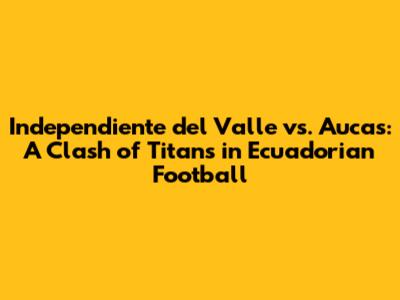 Predicting the outcome of an Independiente del Valle vs. Aucas match is always a tricky task. The rivalry, the form of the players, and the tactical battles all contribute to making these games highly unpredictable. However, we can analyze the teams' current form, their previous encounters, and the key factors that could influence the result.