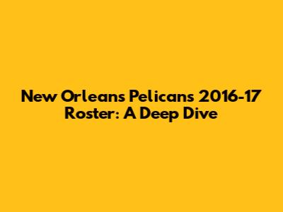 New Orleans Pelicans 2016-17 Roster: A Deep Dive